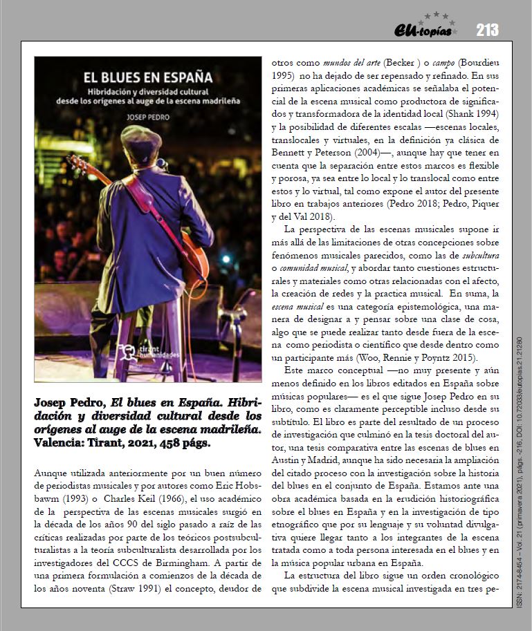 Josep Pedro publica El Blues en España (Tirant Lo Blanch, 2021)